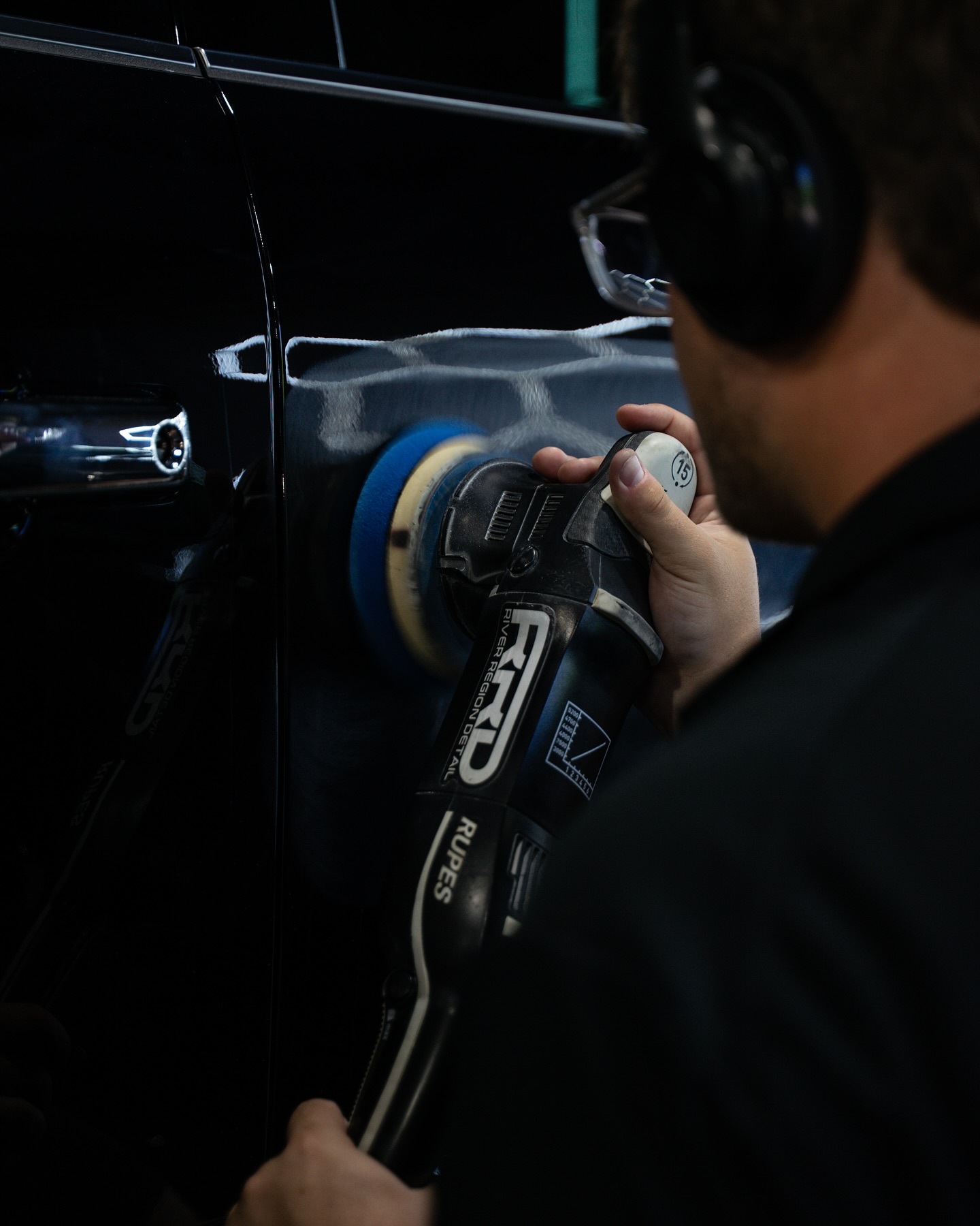 Two-step machine correction — a cutting stage to remove swirls, scratches, and oxidation, followed by a refining polish for insane gloss and clarity